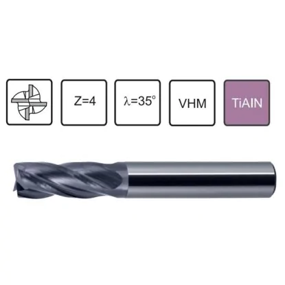 Fi 10 mm VHM cutter Z-4 cylindrical face full carbide, with TiAIN coating, fine-grain universal carbide, with smooth cylindrical shank DIN6535 HA.