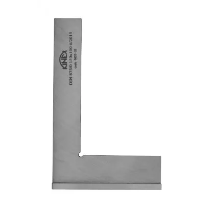 Anschlagwinkel 600x300 mit zwei Armen 750 mm und 375 mm. Der Winkel hat an seiner kürzeren Seite einen Fuß. Der Fuß erleichtert das Aufstellen auf ebenen Flächen. Er ist ein ideales und unentbehrliches Werkzeug für Schweißer, Dreher oder Fräser beim Anreißen. Er erleichtert das Einrichten von rechten Winkeln von 90° unter Nicht-Laborbedingungen. Anschlagwinkel gehört zur Messgruppe der Winkellehren.