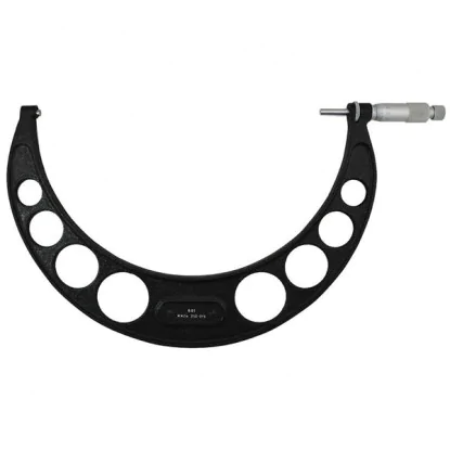 Die Bügelmessschraube 250-275 mit Hartmetallspitze ist für Außenmessungen mit einer Genauigkeit von 0,01 mm ausgelegt. Dank der Spindelarretierung ist es möglich, das gemessene Maß zu fixieren. Die Skala befindet sich auf der Trommel und auf der mattierten Hülse.