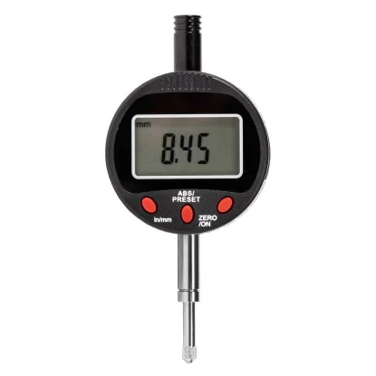 Nowoczesny czujnik zegarowy elektroniczny przeznaczony do wykonywania pomiarów tam, gdzie wymagana jest bardzo wysoka precyzja. Jest to czujnik zegarowy elektroniczny 0-12,7 mm do pomiaru w zakresach od 0 mm do 12 mm, z dokładnością do 0,01 mm IP 54. Oferowany przez nas czujnik zegarowy do tokarki i frezarki, przeznaczony jest do wykonywania szybkich pomiarów: wysokości, bicia i innych wymiarów. Najczęściej wykorzystuje się go wyznaczania najazdów na krawędzie. Posiada cyfrowy wyświetlacz, który pozwala na wyświetlanie bardzo precyzyjnych wymiarów.