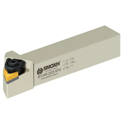 Messer mit "M"-Wendeschneidplatten sind die beste Wahl für Hochleistungsbearbeitungen, sowohl beim Schruppen als auch beim Schlichten, die die höchste Steifigkeit und Stabilität der Plattenklemmung erfordern. Sie werden für das Außendrehen und Bohren mit großen Durchmessern (über 25 mm) verwendet. Das "M"-System zeichnet sich durch eine sehr hohe Wiederholgenauigkeit der Schneidenposition aus, ohne lose Spannelemente.