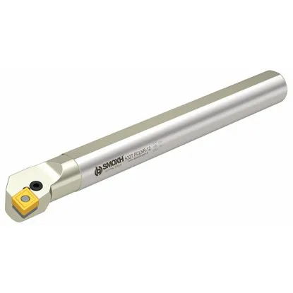 Beidseitig austauschbare Wendeschneidplatten (Einsatzwinkel gleich 0 Grad), dreieckig, quadratisch und rhombisch, werden mit Hilfe eines Bolzens, eines Klemmkeils und einer Schraube auf der Oberfläche der zylindrischen Bohrung geklemmt. Für die Schruppbearbeitung werden S25 PCLNR -12 Klappdrehmesser mit im "P"-System eingespannten Wendeplatten verwendet. Das "P"-System zeichnet sich durch einen einfachen Wendeplattenwechsel aus, ohne lose Spannelemente.