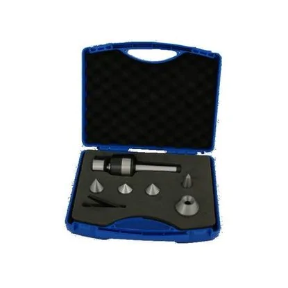 Der Drehkegel wird am Reitstock der Drehmaschine angebracht, dank seiner rotierenden Spitze gibt es keine Reibung zwischen dem Arbeitsteil des Kegels und dem Werkstück. Kegelwinkeltoleranz AT4. Oberflächenhärte mindestens 58 HRC. Ohne Auswuchten, für konventionelle Bearbeitungen geeignet. Der Satz besteht aus den Bits: 8841, 8842, 8843, 8844, 8845, 8846, 8847, Fang 8831.