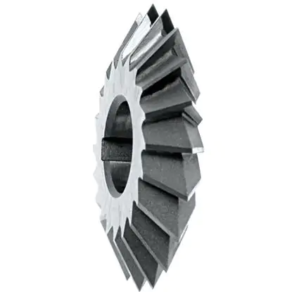 Profi-Winkelfräser. Typ NFKe, Scheibenfräser, symmetrisch, Größe 50/45, gefertigt nach DIN 847, zum gleichzeitigen Fräsen von zwei schmalen gekoppelten ebenen Flächen oder zwei schmalen schrägen Flächen. Der Winkelfräser in unserem Angebot ist aus modernem HSS-Molybdän-Schnellstahl gefertigt. Aufgrund der technischen Eigenschaften dieses Stahls sind die Fräser widerstandsfähiger gegen schwere Zerspanungsbedingungen als Fräser aus herkömmlichem Werkzeugstahl. Sie zeichnen sich auch durch eine bessere Widerstandsfähigkeit gegen jegliche Beschädigung der Schneiden und eine längere Lebensdauer aus. Die fraglichen Fräser sind für die Bearbeitung von unlegierten Stählen, Metallen, Nichteisenlegierungen und anderen Werkstoffen der Klasse P1.2 P1.3. bestimmt. Sie werden für die Bearbeitung bei mittleren und hohen Geschwindigkeiten auf konventionellen und computergesteuerten Werkzeugmaschinen empfohlen.