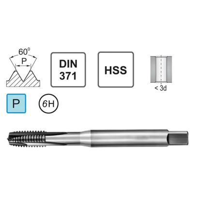 Gewindebohrer M1,2 Durchgangsbohrung mit kurzem Schnitt (3-5 Windungen) - hat Werko gerade Spannuten mit verstärktem Schaft metrisch regulär, hohe Leistung, aus Schnellarbeitsstahl. Verwendung für das maschinelle Schneiden von Innengewinden
