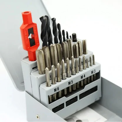 Gewindebohrer Set M3-M12 ist ein Set für professionelle Werkzeugmacher, bei denen die Wiederholbarkeit der Abmessungen und die Einhaltung der Toleranzen von Innen- und Außengewinden erforderlich sind.