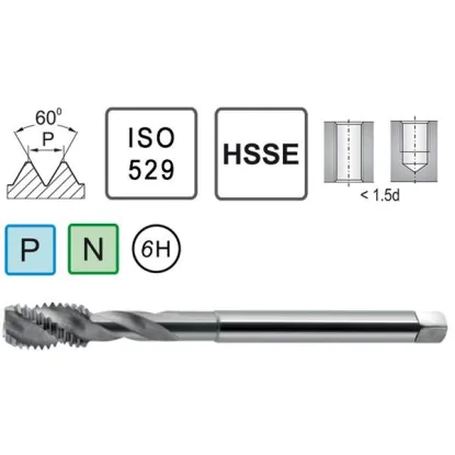 Profesjonalny gwintownik maszynowy M2,5 skrętny nieprzelotowy o krótki nakroju (2-3 zwój) - posiada rowki wiórowe skrętne, metryczny, typ M, średnica 2,5 mm. Gwintownik jest wykonany według normy wymiarowej ISO 529/35 – rowki wiórowe śrubowe. Jego producentem jest serbska firma FRA (Fabrica Reznog Alata Cacak). Dedykowany jest do profesjonalnego nacinania gwintów na elementach wykonanych ze stali stopowych, stli nierdzewnej, stali kwasoodpornej, stali żaroodpornej, staliwa i różnych gatunków żeliwa. Oferowane przez nas gwintowniki maszynowe metryczne są wyprodukowane z nowoczesnej kobaltowej stali szybkotnącej HSSE. Jest to stal o wyjątkowych parametrach technicznych, wyróżniająca się dużą twardością i trwałością. Dzięki jej właściwościom gwintowniki maszynowe M2,5 skrętne nadają się do obróbki wysokowydajnej na zwiększonych obrotach, nawet w wysokiej temperaturze sięgającej do 670 stopni C.