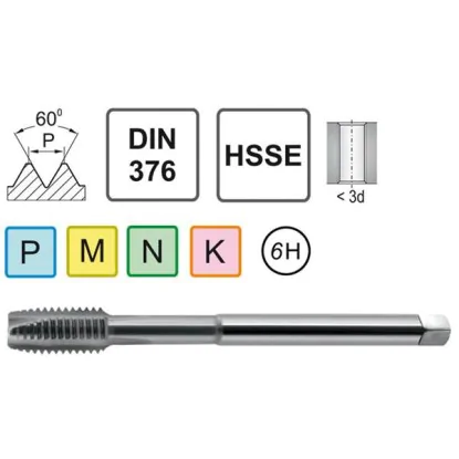 Wysokiej jakości gwintownik maszynowy M3,5 przelotowy prosty - do otworów przelotowych M3,5 z chwytem wzmocnionym do gwintów metrycznych zwykłych typ M 3,5 mm. Wykonany jest zgodnie z normą DIN 371, w tolerancji 6H, nakrój B – z wypychaczem wióra pozwalający na odprowadzanie wiórów przy gwintowaniu otworów przelotowych. Wykonany jest ze specjalnej utwardzonej stali szybkotnącej kobaltowej HSSE. Ten wyjątkowy materiał znacznie zwiększa wytrzymałość gwintownika maszynowego M3,5 przelotowego na ciężkie warunki skrawania, dzięki czemu znacznie ogranicza ryzyko uszkodzenia ostrza podczas obróbki twardych i trudnoobrabialnych materiałów. Można nim gwintować elementy wykonane ze stali zwykłej, stali niestopowej (węglowej), metali, metali kolorowych, stopów metali i termoplastycznych tworzyw sztucznych. Oferowany przez nas gwintownik pozwala również na uzyskanie wysokiej wydajności obróbki, dzięki czemu w takim samym czasie możliwe jest gwintowanie większej liczby elementów. Dzięki temu spadają koszty pracownicze, a zastosowanie gwintownika jest uzasadnione nie tylko technicznie, ale również ekonomicznie.