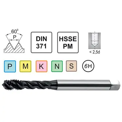 Nowoczesny gwintownik maszynowy M6 HSSE-PM nieprzelotowy skrętny - do otworów przelotowych, maszynowy ogólnego przeznaczenia z chwytem wzmocnionym. Nadaje się do wykonywania gwintów metrycznych zwykłych typ M, średnica 10 mm, o kacie 60 stopni, ISO DIN-13. Rodzaj nakroju C (2 – 3)P. Można nim gwintować różnej długości otwory przelotowe w materiałach dających wióry krótkie. Gwintownik wyprodukowany jest ze specjalnej stali szybkotnącej HSS. Właściwości stali przekładają się bezpośrednio na uzyskanie wysokiej wydajności skrawania nawet w bardzo twardych i trudnoobrabialnych materiałach takich jak stale zwykłe, stale niestopowe, metale, metale kolorowe, stopy metali, termoplastyczne tworzywa sztuczne. Zaletą gwintownika jest też wysoka wytrzymałość ostrza na ewentualne uszkodzenia mechaniczne (złamanie, pęknięcie, wyłamanie, stępienie, wyszczerbienie) i jednocześnie możliwość uzyskania wysokiej precyzji obróbki. Cechy gwintownika sprawiają, że może on być eksploatowany przez bardzo długi okres, a jednocześnie pozwala na znaczne skrócenie czasu pracy. Dedykowany jest zarówno indywidualnym klientom, jak i dużym profesjonalnym zakładom ślusarskim.
