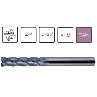 Planfräser fi 12 mm Z-4 zylindrisch Vollhartmetall, TiAIN-beschichtet, feinkörniges Universalhartmetall, mit glattem Zylinderschaft DIN6535 HA.