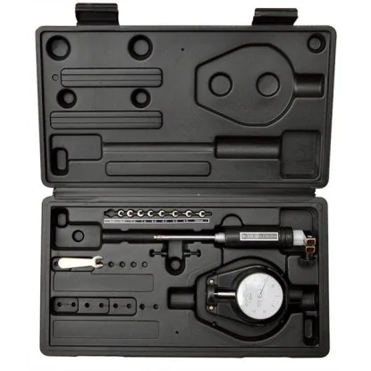 Innen Feinmessgerät mit Messuhr mit dem Zweipunktmessgerät 10-18 lassen sich Messungen sehr schnell durchführen. Sein Vorteil ist auch die Wiederholbarkeit der Messungen und die Möglichkeit, zu überprüfen, ob das gebohrte Loch perfekt rund und frei von Verformungen ist. Jedes Messuhr-Innendurchmesser-Messgerät besteht aus einer Präzisions-Messuhr, die zum Ablesen des Messwertes dient, einer Messspitze und austauschbaren Spitzen, die zum Messen verschiedener Durchmesser oder Abmessungen benötigt werden.
