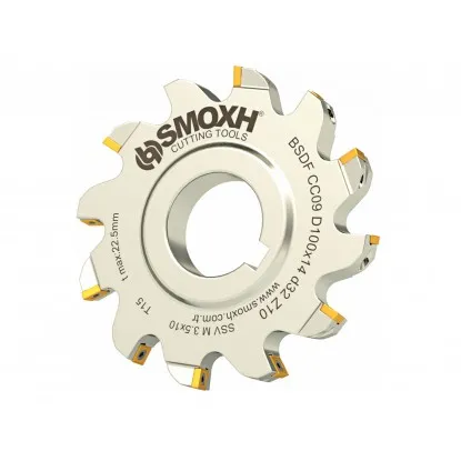 Präzisions-Klappscheibenfräser fi 80 mm von Smoxh, konzipiert für die professionelle Metallbearbeitung. Mit einem Durchmesser von 80 mm und einer Breite von 8 mm ist das Werkzeug mit 10 Plätzen für austauschbare Schneidplatten ausgestattet, was eine hohe Produktivität und einen wirtschaftlichen Einsatz unter industriellen Bedingungen gewährleistet.