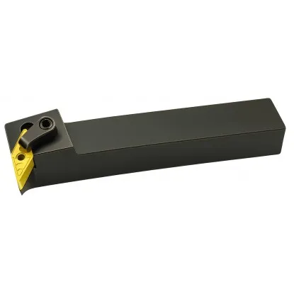 Nóż tokarski składany MVUNR 25x25 16 Varel na płytkę wieloostrzową VNMG. 1604rr. SYSTEM „M" - ujemna geometria noży. Płytki wymienne dwustronne (kąt przyłożenia płytki równy 0°) mocowane są kołkiem na powierzchni otworu cylindrycznego i dociskiem z góry na powierzchni natarcia. Noże składane MVUNR 25x25 z płytkami mocowanymi w systemie „M" to najlepszy wybór do wydajnej obróbki, zarówno zgrubnej jak i wykończeniowej, wymagającej najwyższej sztywności i stabilności zamocowania płytki. Stosowane są do toczenia zewnętrznego i wytaczania otworów o dużych średnicach (powyżej 25 mm). System „M" cechuje bardzo wysoka powtarzalność położenia ostrza, brak luźnych elementów mocujących.