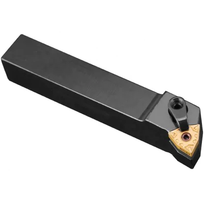 Nóż tokarski składany MWLNL 20X20 08 firmy koreańskiej Varel - lewy nóż tokarski na płytkę wieloostrzową WNMG 080408 lub o innym promieniu. System mocowania płytek - „M ". SYSTEM „M" - ujemna geometria noży. Płytki wymienne dwustronne (kąt przyłożenia płytki równy 0°) mocowane są kołkiem na powierzchni otworu cylindrycznego i dociskiem z góry na powierzchni natarcia.