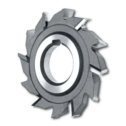Moderner Dreiseitenfräser 50x8 abwechselnd schräg 50x8 Typ NFTb, AN - dreiseitig mit abwechselnd schrägen Schneiden. Er hat eine Arbeitsbreite von 8 mm und einen Arbeitsdurchmesser von 50 mm. Die Klingen befinden sich auf der kurzen zylindrischen Fläche und auf beiden Seiten. Die Breite des Fräsers ist an die Breite der zu fräsenden Nut angepasst. Planfräser sind für die Bearbeitung von flachen oder schmalen Nuten und zum Schneiden von Metallteilen bestimmt. Die Fräser in unserem Angebot werden nach der Maßnorm DIN 885 aus hochwertigem HSS (High Speed Steel) hergestellt. Diese Stahlsorte trägt zu einer erhöhten Widerstandsfähigkeit der Fräser gegen schwere Zerspanungsbedingungen sowie zu einer erhöhten Widerstandsfähigkeit gegen mögliche mechanische Beschädigungen bei. Die 50x8 HSS-Scheibenfräser eignen sich für die Hochleistungsbearbeitung von harten unlegierten Stählen, legierten Stählen, Stahlguss, Grauguss, Metallen und Nichteisenmetallen, Messing, Bronze und anderen harten Materialien.