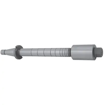Trzpień frezarski długi 7181 należy do zwykłego wyposażenia frezarek poziomych i służy do mocowania frezów z rowkiem zabierakowym. Chwyt stożkowy trzpienia 7:24 jest osadzony w stożkowym gnieździe wrzeciona, bezpośrednio lub za pośrednictwem tulei redukcyjnej i dociskany do gniazda śrubą przechodzącą przez otwór wrzeciona.