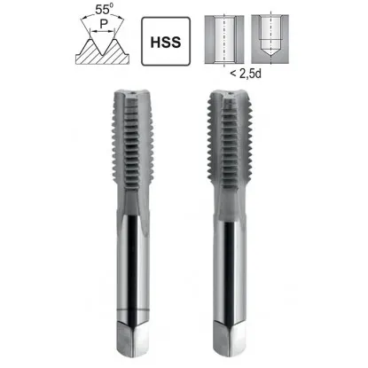Hand Tap 3/4 inch LH G DIN 5157/2 HSS is a specialized 2-piece set (ripper + finisher) designed for manual cutting of left-hand cylindrical G(BSP - British Standard Pipe) pipe threads with a profile angle of 55 degrees. The tool is made of high-quality HSS high-speed steel, which ensures durability, precision and resistance to wear in daily use.