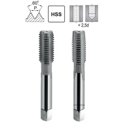 Technical parameters: nominal diameter ten millimeters; pitch zero comma seventy-five millimeters; outline sixty degrees according to ISO 68-1; hole tolerance field class 6H according to ISO 965; right-hand thread; straight chip grooves provide predictable evacuation. Material: HSS high-speed steel in a ground version that stabilizes the edge and reduces micro chipping. The ISO 529/2-compliant layout divides the process into two stages, and the organization of the transitions is supported by the M10x0.75 Hand Tapping Set. Recommended drill bit for the thread: nine and two-tenths millimeter; emulsion or active oil cooling improves the surface smoothness of the bottom of the coil.