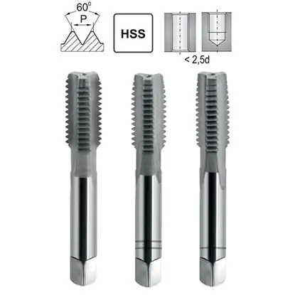 They are used for cutting M5, ISO DIN 13, metric ordinary threads with a tolerance of 6H and an angle of 60 degrees. M5 hand taps are made of special high-alloy HSS. This is a modern material that causes increased machining efficiency and at the same time very high cutting precision. Also noteworthy is the fact that high speed steel significantly increases the strength of taps to withstand tough machining conditions. Even when cutting very hard and hard-to-machine materials, the blades of the thread cutters are resistant to possible damage (breaking, cracking, dulling). The tools comply with DIN 352 and can be counted among the most efficient in their class.