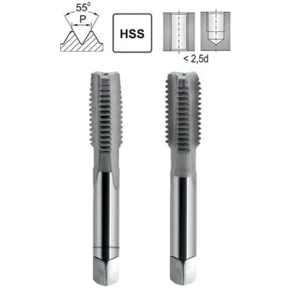 Hand Threader1 inch left G DIN 5157/2 HSS is a 2-piece set (ripper + finisher), designed for manual cutting of cylindrical G(BSP - British Standard Pipe) pipe threads with a left-hand cut direction and a profile angle of 55 degrees. Made of wear-resistant HSS high-speed steel, it ensures long life and precise tool guidance even in demanding conditions.