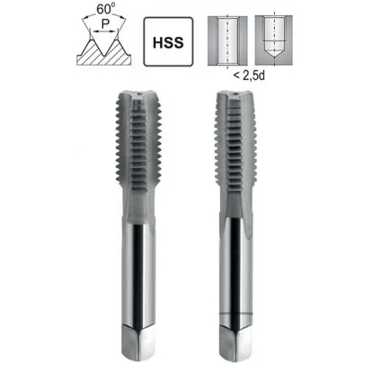 Technical specifications: nominal diameter of thirteen millimeters; pitch of one and one-quarter millimeters; outline of sixty degrees according to ISO 68-1; bore tolerance of 6H according to ISO 965; right-hand thread; straight chip grooves ensure predictable chip evacuation. The HSS ground version maintains edge sharpness and reduces the risk of micro chipping. According to DIN 2181/2, the process is carried out in two stages, and the work order is supported by the M13x1.25 Hand Tapping Set. Recommended drill bit for the thread: eleven and eight tenths of a millimeter; using emulsion or active oil improves the surface quality of the bottom of the coil and extends edge life.