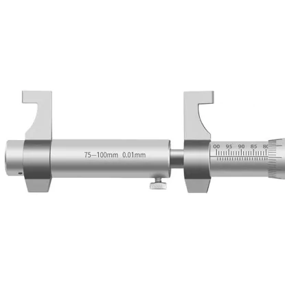 The75-100 mm internal jaw micrometer is designed for internal measurements. It has ground carbide measuring surfaces. The measured measurement can be stopped thanks to the locking screw.
