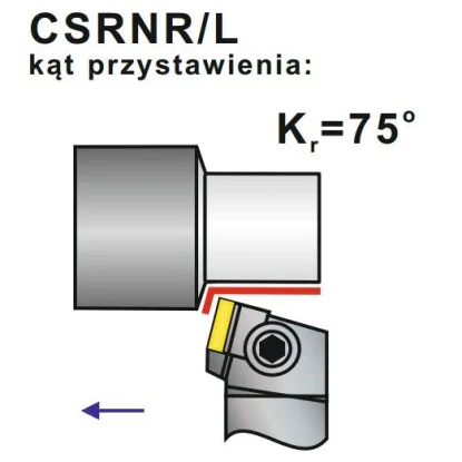 Interchangeable inserts one-sided (insert angle equal to 11°) or two-sided (insert angle equal to 0°), square and triangular, with a flat contact surface, fixed on the contact surface with a screw head that presses the insert through a carbide chipbreaker laid on it. CSRNR 20x20-12 knives with inserts clamped in the "C" system are used for roughing (negative geometry) and finishing (positive geometry) of external surfaces and holes (positive geometry).