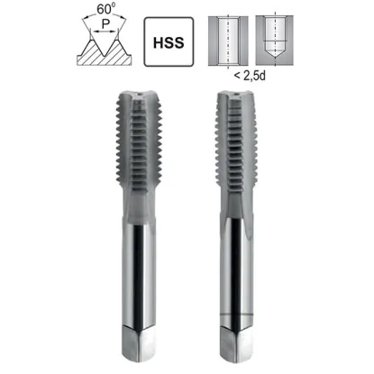 Hand taps M14 left x2 HSS. General-purpose hand taps designed for making standard M14 metric, left-hand LH threads, with an angle of 60 degrees. The set includes two threaders: No. 1 - proper and No. 2 - finishing. Their use results in the production of precision threads in accordance with ISO DIN-13.The tools are made of special tool steel HSS (High Speed Steel). The parameters and properties of this steel result in high precision and high efficiency in the machining of materials of the P1.2 - P1.3 group, i.e. metals, carbon steels, non-ferrous metals and their alloys, as well as other hard raw materials. M14 left metric taps are characterized by high quality workmanship, and are dedicated to both individual customers and professional locksmith workshops. The tools are of high quality and made according to DIN 352.