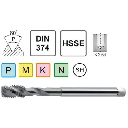 Profesjonalny gwintownik maszynowy M14x1 skrętny nieprzelotowy o krótkim nakroju (2-3 zwój) - posiada rowki wiórowe skrętne z chwytem przelotowym, do nacinania gwintów metrycznych drobnozwojnych, typ M 14x1, zgodny z normą DIN 374. Posiada nakrój C (2-3 P), rowki wiórowe śrubowe, klasa tolerancji wykonanych gwintów 6H. M14x1 fine torsion machine taps offered to you in our store are made of modern HSSE high-speed steel, the essential component of which is cobalt in an amount of about 5%. This unique element significantly increases the cutting properties of taps. First of all, they are characterized by greater hardness, durability and wear resistance even at very high temperatures - up to 670 degrees C. They provide high-performance machining - at high speeds, without compromising the very good accuracy of the threads being cut. They can be used for cutting hard and hard-to-machine materials such as alloy steels, stainless steel, acid-resistant steel, heat-resistant steel, cast steel, cast iron, non-ferrous metals. The blades of the taps are resistant to mechanical damage, which significantly extends the life of the tools.