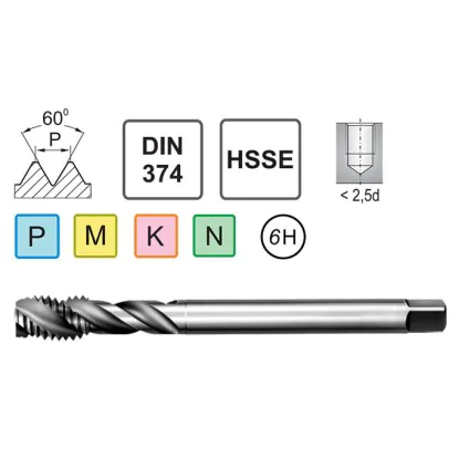 Modern M6x0,75 torsion machine t apping threader with a short (2-3 coil) - has torsion chip grooves, for professional applications, compliant with DIN 374. Designed for cutting metric fine threads type M6x0,75 - ISO DIN-13. It has a through shank, helical chip grooves, ISO2-6H tolerance class of the threads made, type of C (2-3 P) nut - for through-holes and blind holes in materials giving short chips. The fine thread machine threaders in question were manufactured by the Serbian company FRA. It is a leading brand in the tool market, which is known to professionals in almost all industries around the world. The offered M6x0.75 torsion machine threaders for stainless steel were made of modern high-speed steel HSSE - with the addition of 5% cobalt. Thanks to it, the threaders are ideal for all professional applications - for threading parts in large locksmith shops using both conventional mechanical machine tools and CNC numerical control machine tools. HSSE steel tools are characterized by high machining performance, high cutting precision, toughness to withstand harsh machining conditions and long service life.