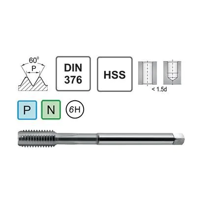 Machine tapsM1,4 straightthrough with a short thread pattern (3-5 coil) - has straight chip grooves in which chips collect during threading. This tapping machine does not lead the chips either up or down the hole.