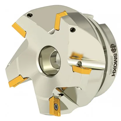 Millinghead fi 75 mm for planing, mounted Turkish production Smoxh (suitable Akko AFM75C-AP16-D063-A27-Z06) face on rectangular inserts APKT 1604 multi-sharpened. It is ideal for use in both face and side machining - beveling side surfaces to 75 degrees. The head is designed for roughing, medium fine machining and can be used for finishing.