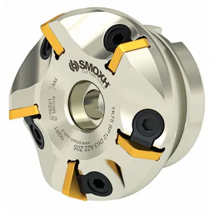 Millinghead fi 75 mm for planing, mounted Turkish production Smoxh (suitable Akko AFM75C-SP12-D063-A27-Z06) face on SPKN 1203 EDR square inserts multi-sharpened . It is ideal for use in both face and side machining - with 75-degree beveling of side surfaces. The head is designed for roughing, medium fine machining and can also be used for finishing.