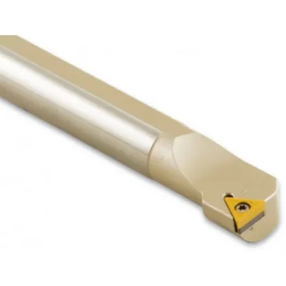 Most external turning knives, positive or negative boring knives geometry of knives. Single-sided indexable inserts clamped on the surface of the tapered-arc bore with a countersunk screw. The "S" system is the most common system of fixing indexable inserts. It is characterized by simplicity, high reliability, very good repeatability of the blade position and the ability to mount inserts of small dimensions. The main area of application for S16 STFCL11 boring knives with inserts clamped in the "S" system is finishing of external surfaces and surfaces of holes (especially holes with small diameters), but they are also used for roughing.