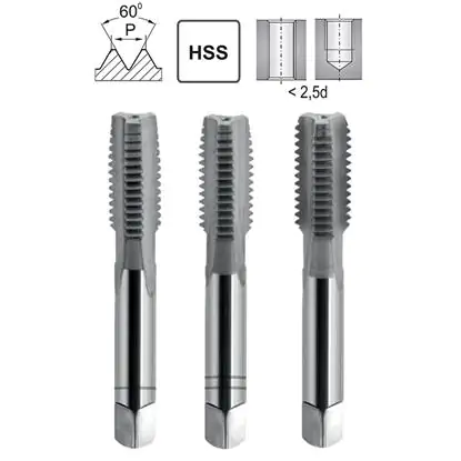 Professional hand threaders for making unified ordinary UNC threads, size No. 12-24. The threaders are sold in a 3-piece set. They are made in accordance with the DIN 352 dimensional standard from modern HSS high-speed steel. This is the steel used for the production of professional cutting tools, used for multi-series machining of hard and hard-to-machine materials. Unified hand taps offered in our store are characterized by increased strength for heavy cutting conditions, they are very hard, durable and resistant to abrasion even when cutting hard and hard-to-machine materials. Taps are resistant to any mechanical damage (breakage, cracking, chipping), which significantly extends their service life and reduces labor costs. The hand taps in question are suitable for machining parts made of carbon steel, metals, nonferrous metals, metal alloys and hardenable plastics.