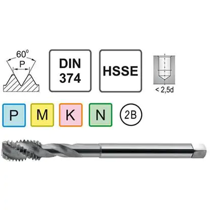 Professional machine Tap 7/8-14 UNF with through shank in accordance with DIN 374, suitable for machine-made American unified threads. These are UNF threads - fine threads, 7/8 inch diameter, 14 turns per inch. The outline of the threads is triangular with an angle of 60 degrees. Type of nut D - with blind and through holes with long thread run-out. The tolerance class of the made threads is 2B. The 7/8-14 UNF unified machine threaders offered to you are made with the highest precision from special cobalt high-speed steel HSSE (High Speed Steel).